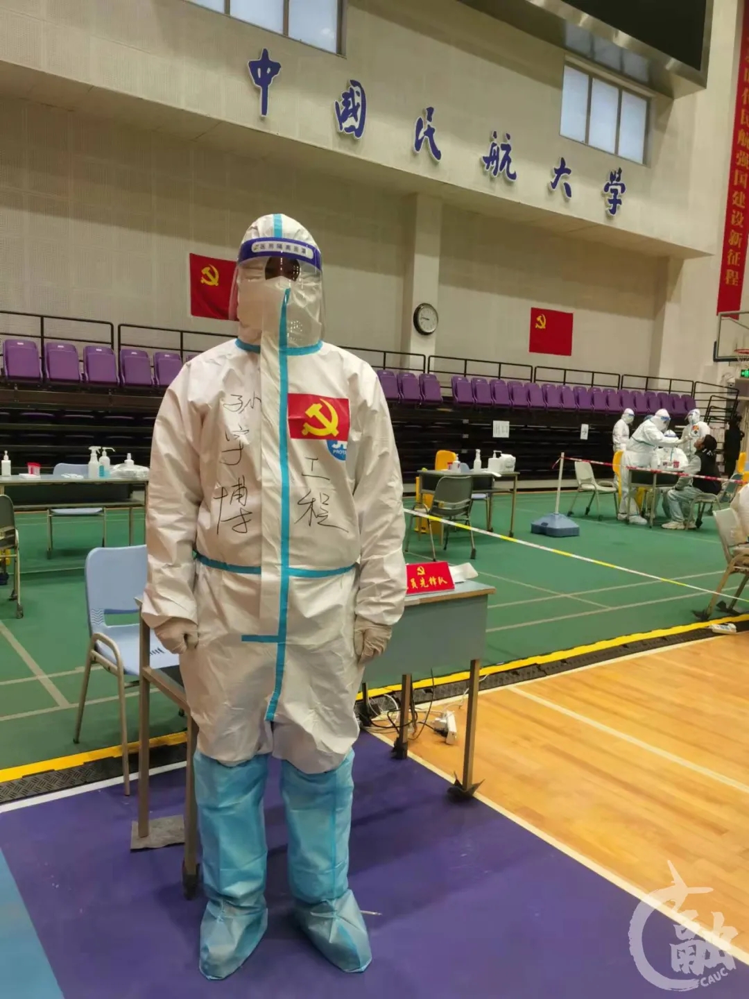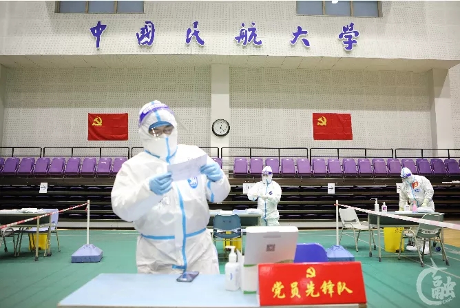 在全力迎战奥密克戎防疫工作中,我非常荣幸成为中国民航大学核酸检测的志愿者。穿上防护服的那一刻起,深深的体会到医务工作者的艰难与辛苦。每一次核酸采样后,医务工作者都要进行手消毒,冰冷的消毒液无情地带走他们手上仅存的温度,手指已经僵硬了,但防疫仍在继续,是他们用热血守护这一方净土,感谢所有防疫一线的白衣天使!让我们携起手来,积极抗击疫情,让奥密克戎在天津无处遁逃!