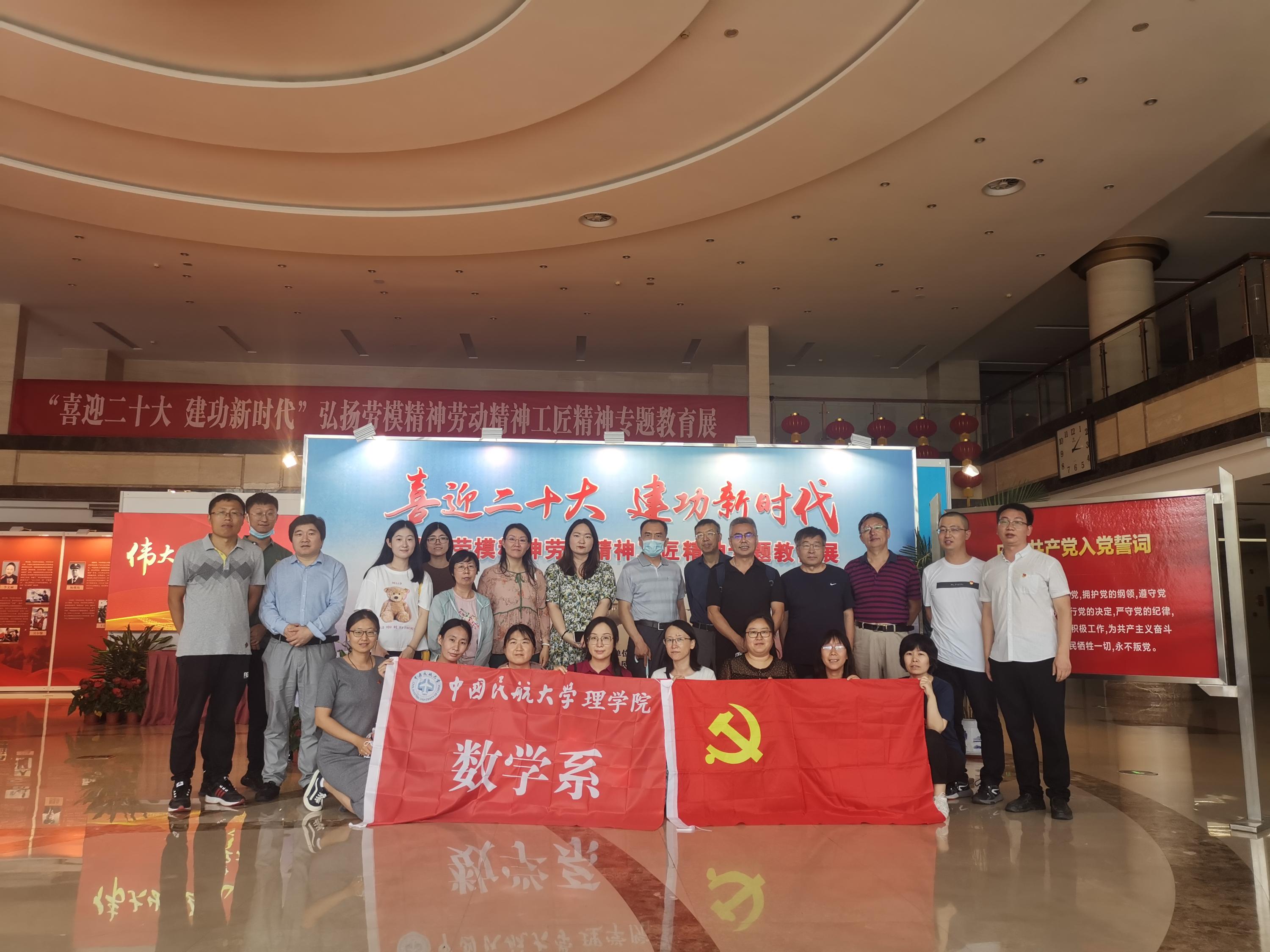 数学系新入职的青年教师党员,当观看到数学系荣获全国工人先锋号的展板时,异常激动和兴奋,纷纷表示:作为新进入职到国家级荣誉称号大家庭的成员,同时也作为未来民航事业的建设者,一定要传承老教师默默无闻、甘于奉献的工匠精神、劳模精神、劳动精神,在今后的教学科研工作中,以劳模们为标杆,检视自己在工作中的不足,时时提醒自己,爱岗敬岗,扎实工作,不断提升自己立德树人的能力水平,发挥党员在课程育人中的引领作用,为培养高素质民航人才不懈努力奋斗,以实际行动迎接二十大的胜利召开。