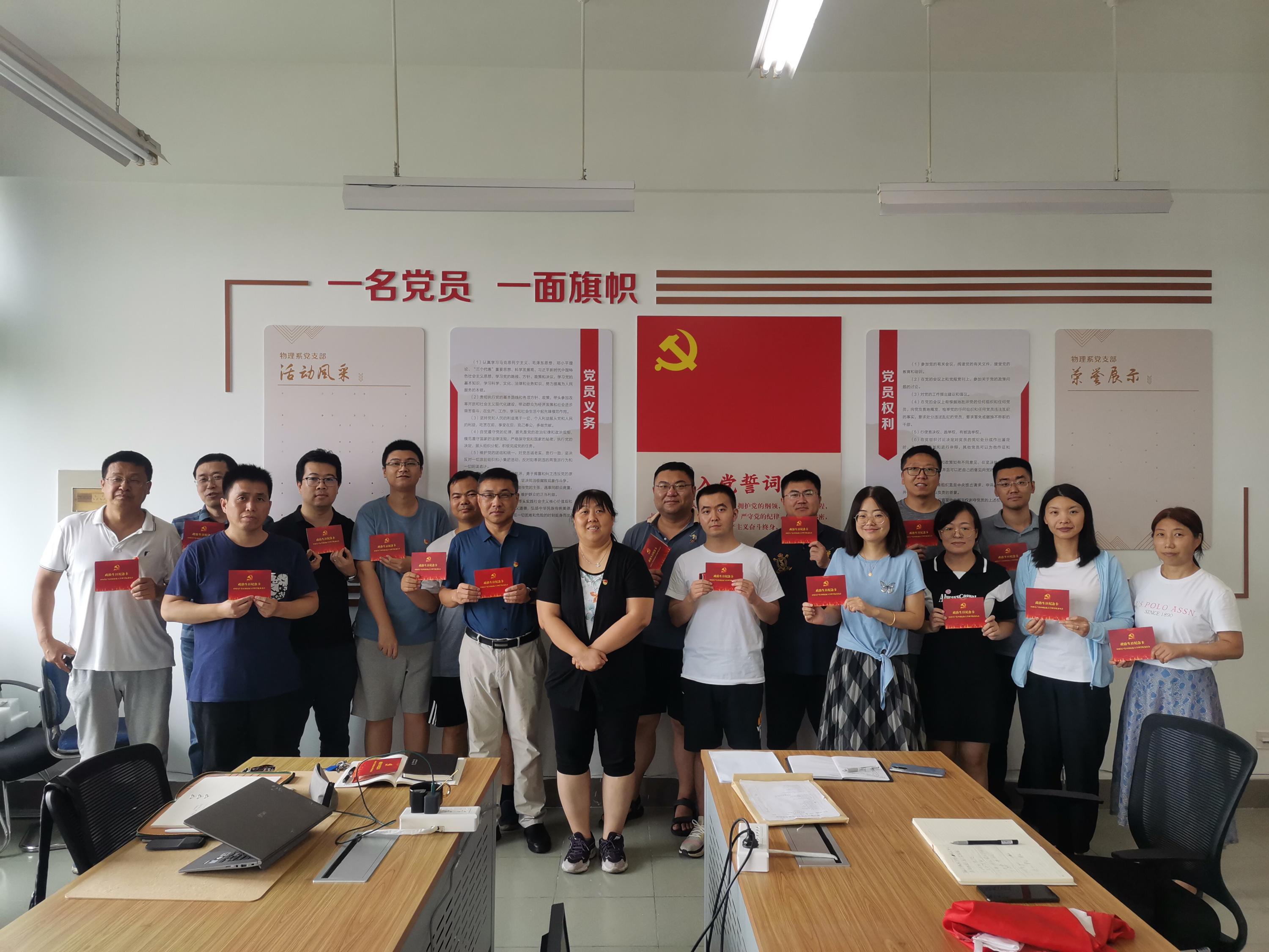 2022年7月1日,在建党101 周年之际,为深入贯彻落实《理学院党委过党员“政治生日”活动计划》的要求,继承和发扬党的光荣传统和优良作风,增强党组织的凝聚力和战斗力,理学院党委下属各支部全体党员举行了“重温入党誓词、牢记初心使命”为主题的特殊党日活动。活动中,各支部为部分党员集体过政治生日,并赠送一张特别的生日贺卡,希望各位党员牢记入党誓词,践行党的宗旨,履行党员义务,加强党性修养,永葆先进本色。
