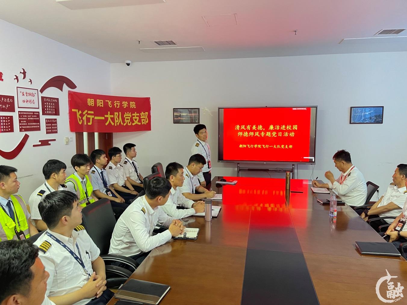 飞行分校各党支部高质量开展形式多样的主题党日活动。朝阳飞行学院党委所属7个基层党支部以主题党课、共建交流等方式开展“师德师风教育”主题党日活动,飞行各大队党支部结合工作实际围绕师德师风建设开展主题党日活动。内蒙古飞行学院双基地党支部开展“恪守初心树师德·扬帆奋进正当时”主题党日活动。扎兰屯基地飞行四大队大队长彭伟讲述曾经在部队担任飞行员的光荣经历,扎兰屯基地党支部书记冯永基从一名飞行教员的角度阐述师德师风对飞行训练的影响。乌兰浩特基地2个党支部与机场党委联学共建,参观兴安盟第一党支部。
