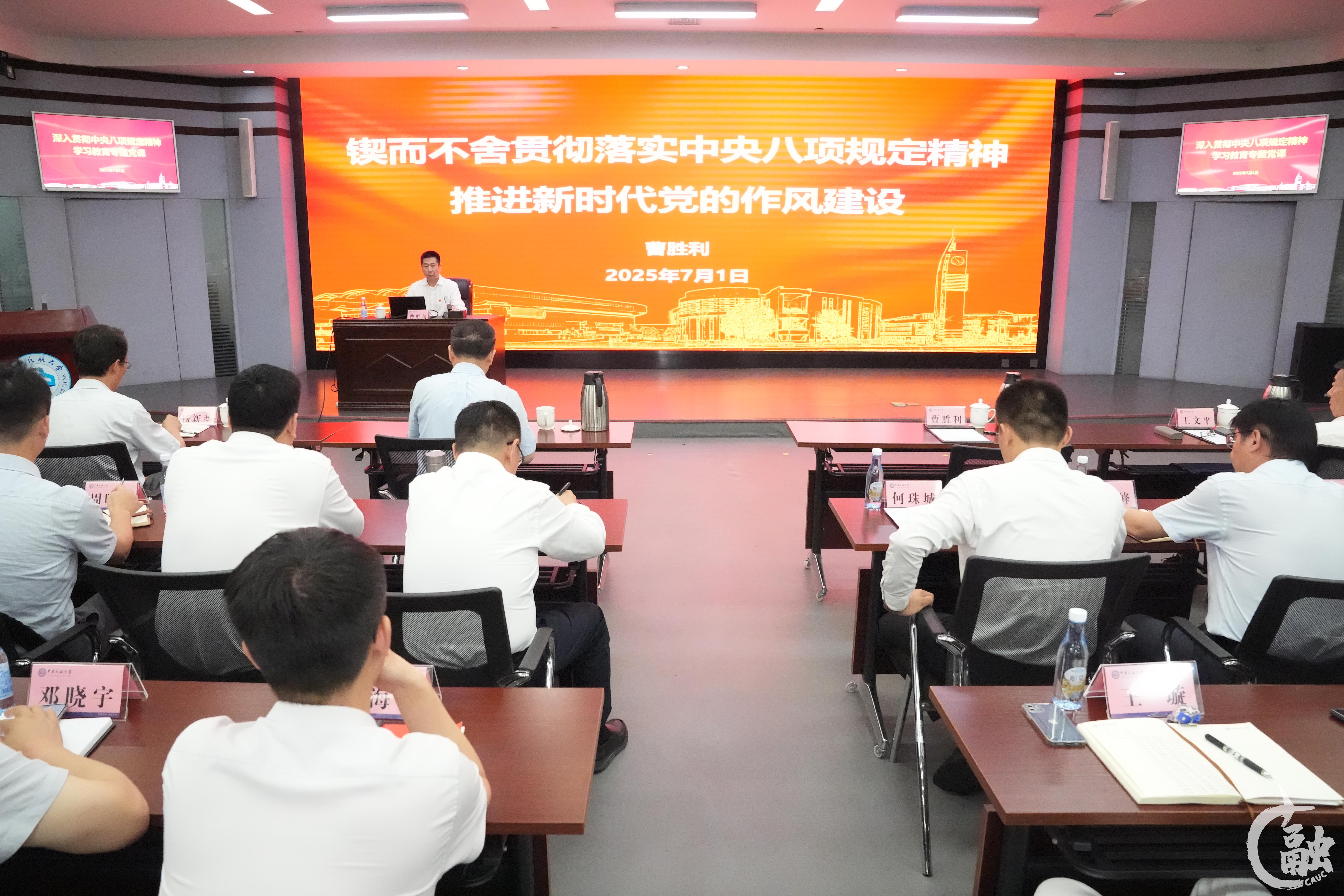 会后,曹胜利围绕“不忘初心 回顾中国共产党历史上的作风建设”“从严从实 推进深入贯彻中央八项规定精神学习教育”和“见行见效 抓牢作风建设为学校高质量发展提供政治保障”三个方面作专题党课报告。曹胜利指出,我们党自成立之日起,就高度重视作风建设,培育并发扬了理论联系实际、密切联系群众、批评和自我批评以及艰苦奋斗、求真务实等优良传统作风,形成和积累了丰富的经验,给人以深刻启迪。新时代背景下,在全党开展深入贯彻中央八项规定精神学习教育,深刻总结党的作风建设的历史经验,对新征程上继续推进作风建设常态化长效化,具有重要启示意义。全体党员、干部务必从严从实,深刻领会习近平总书记关于加强党的作风建设的重要论述,全面学习贯彻中央八项规定及其实施细则精神,做到入脑入心、融会贯通,自觉将其转化为锤炼党性、涵养师德、改进作风的实际行动,以扎实的工作作风、勇于担当的奉献精神全力推进“双一流”高校建设。