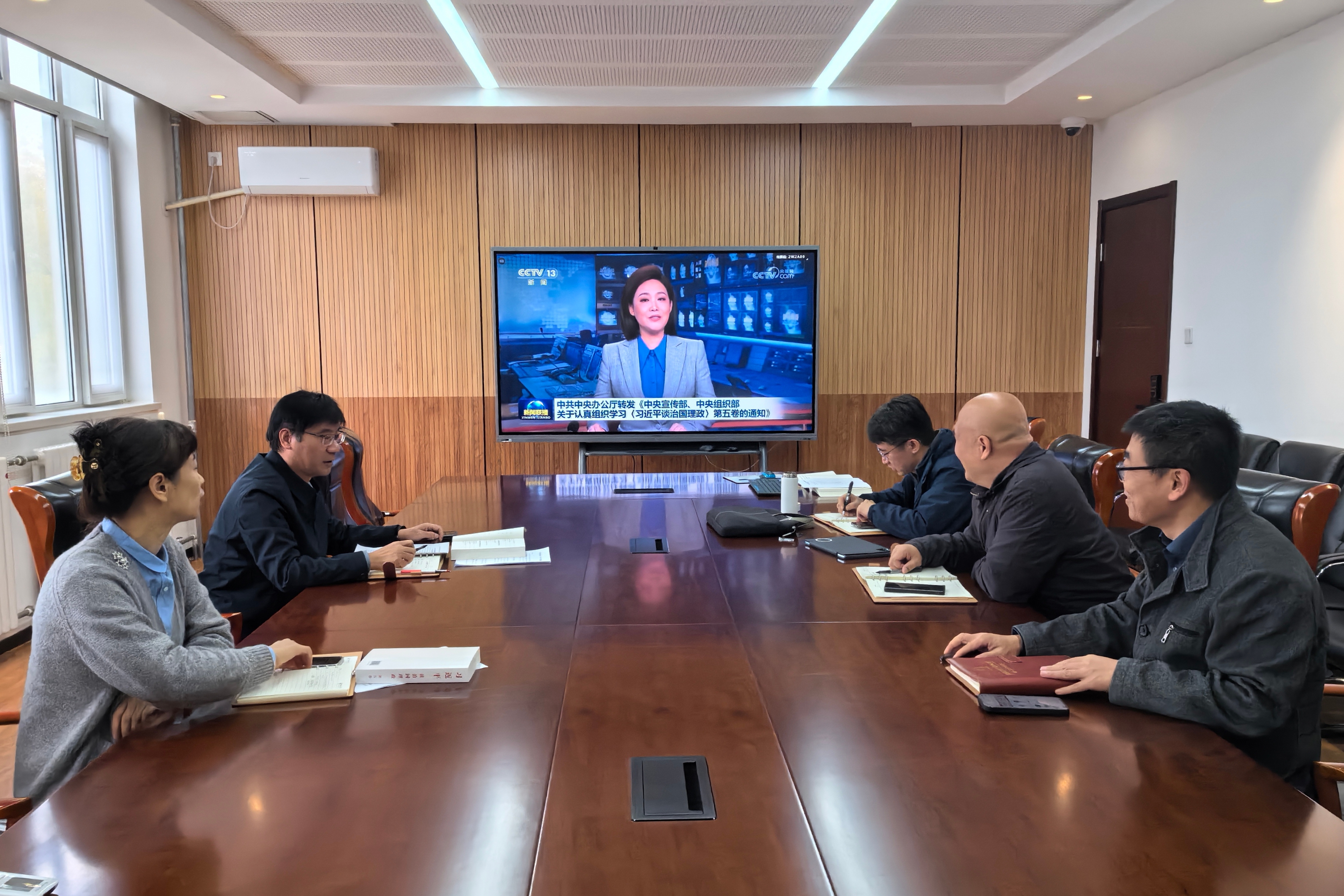 会议严格落实“第一议题”制度,集中观看中央电视台新闻联播视频学习了中共中央办公厅转发《中央宣传部、中央组织部关于认真组织学习〈习近平谈治国理政〉第五卷的通知》和中共中央印发《中国共产党思想政治工作条例》的相关内容,通过权威解读快速把握核心要求,为后续深入学习奠定基础。