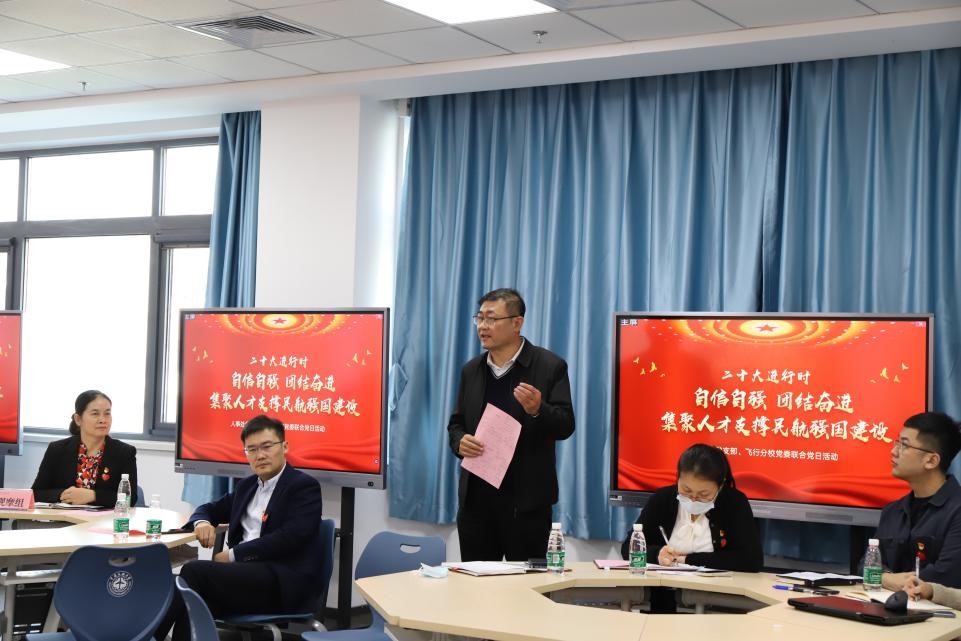 金秋时节,恰逢党的二十大盛会召开之时,人事处党员和部分青年骨干与飞行分校理论教研室支部党员相聚在美丽的宁河校区,联合开展“自信自强 团结奋进 集聚人才支撑民航强国建设”主题党日活动。活动以学习二十大报告为主线,通过“二十大精神领学”“党建+业务”研讨交流主题发言、重温入党誓词、文体联谊活动等形式多样的内容,为党的二十大献上充满激情与活力的深情礼赞。